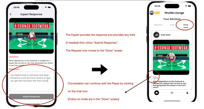 STEP 2: Provide the Response and Click Submit moving the Request to “Done”. Continue discussion with player in the “Done” screen
